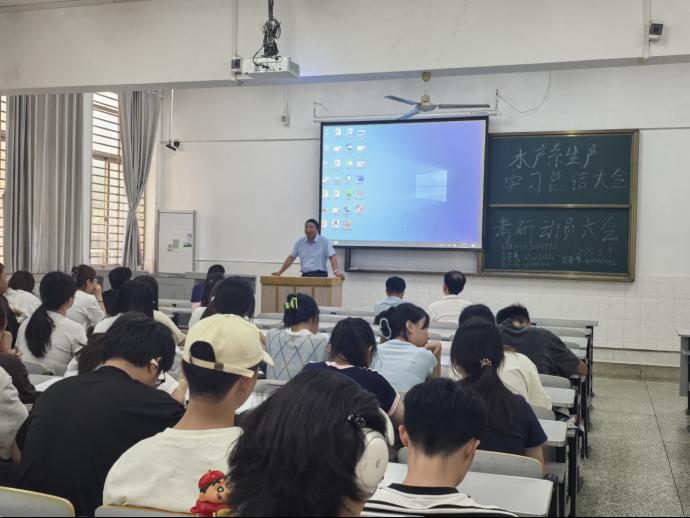 2025年6月9日下午14:00至17:00,2025年“水产养殖学专业生产实习总结暨考研动员”大会在西校区5-115教室隆重举行。本次大会由水产养殖学专业系主任易提林主持,英国365集团网站副经理苏应兵、袁汉文教授、罗凯副教授、梅浩林老师出席会议,水产专业师生齐聚一堂,共同回顾生产实习的丰硕成果,展望考研奋进之路。