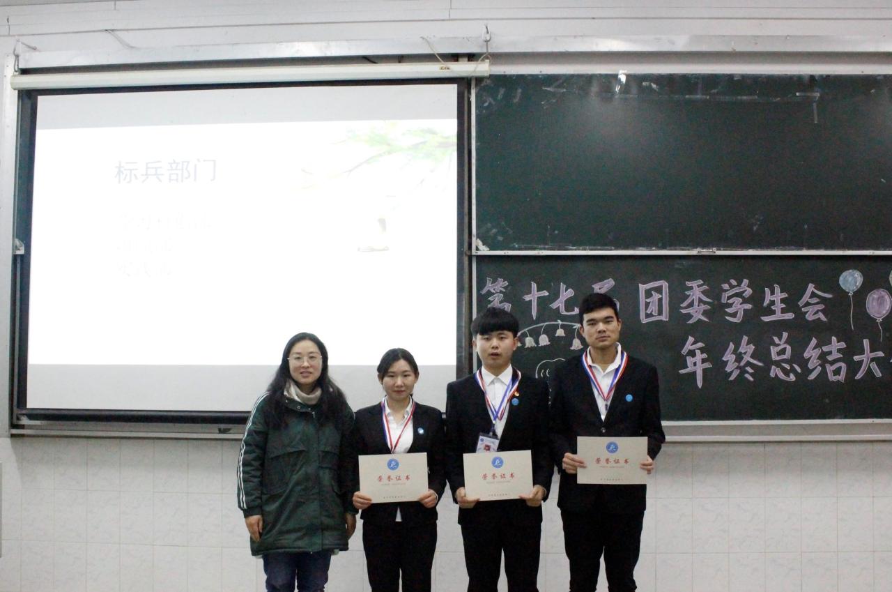 随后进行的是颁奖环节,王海洋老师分别为优秀干事、优秀部长级颁奖,学习科创部、实践部、组织部在本学期表现优异,苏晓云书记为其颁发“标兵部门”的荣誉证书。接着,干事代表洪嘉俊围绕“团结务实,奉献创新”分享自己在团委员工会的所得所感,部长代表袁昌乾以“志存高远,责任为先”为主题分享自己对员工会的见解。其后,团委员工会会长严子星将格言“星光不问赶路人,时光不负有心人”送给全体员工会成员,她希望全体员工会能在坚守态度与初心的同时,提高自身的能力,在接下来一学期的工作中尽善尽美。