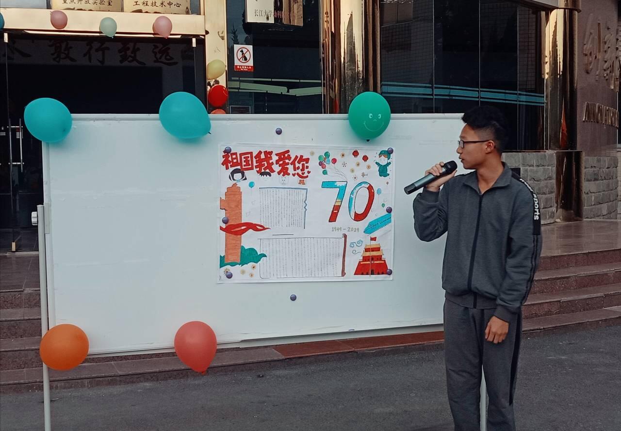 16级辅导员杨湘虹老师进行了活动的半场总结,对七个班的手抄报作品进行了总结,感谢同学们用画笔和文字所抒发的家国情怀,至此中华人民共和国成立70周年之际,广大青年奋发向上、不负韶华就是对爱国最好的诠释,就是送给祖国母亲最好的礼物,接下来的班歌比赛是各班比团结、比凝聚力、比创意的时候,大家都对各个班级的表演充满期待。