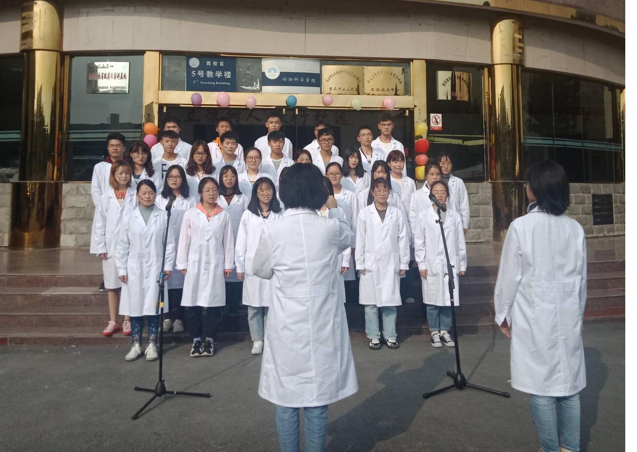 班歌比赛开始,第一个班级一袭白大褂惊艳全场,嘹亮的歌声随伴奏响起,获得了台下同学的阵阵掌声。