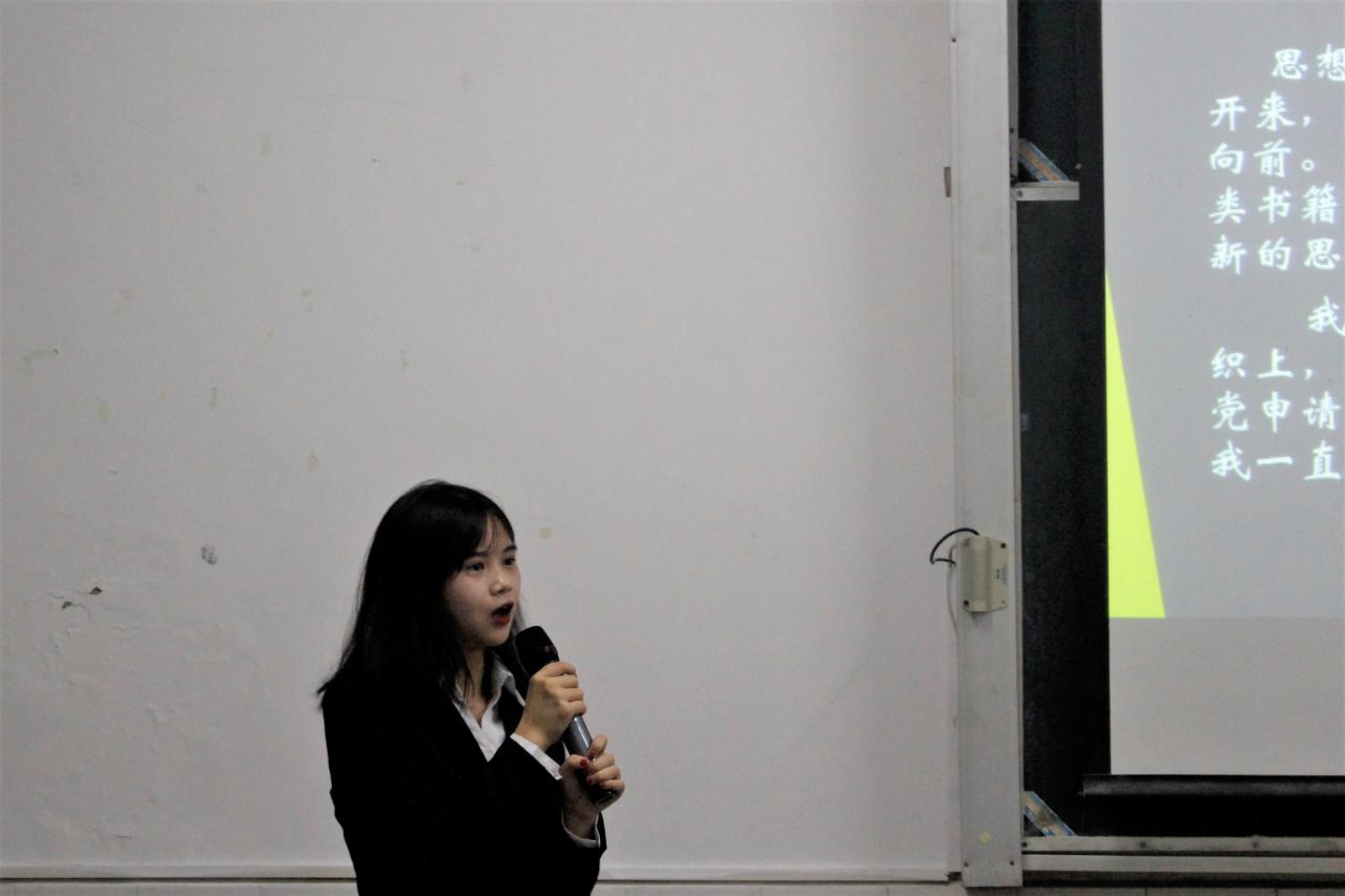 答辩开始,主持人分发评分表。来自16级17级及18级的14名优秀员工依次上台进行答辩,他们通过自己精心设计的PPT向同学们展示了自己的专业绩点、获奖证书、科研活动经历等等,并获得了同学们热烈的掌声。
