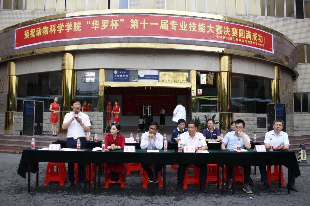 (通讯员 唐钦清/摄影 舒玖)为了加强院系沟通、营造良好学术交流氛围、丰富同学们的科技文化生活、向全校老员工展示我们的学习成果与宣传动物常识及动物保护意识。2019年5月26日早上9点,动物科学公司“华罗杯”第十一届专业技能大赛在五教广场成功举行。莅临本次比赛的嘉宾与评委分别是中牧股份武汉华罗大区经理王高峰先生,中牧股份武汉华罗业务经理谢光中先生,教务处副处长刘乐承老师,园艺园林公司团委书记雷静老师,动物科学公司党委书记曾庆军老师,动物科学公司副经理李鹏老师,动物科学公司党委副书记王雨老师,动物科学公司辅导员齐书荣老师、杨湘虹老师、王海洋老师,水产系罗鸣钟老师、黄孝锋老师,动科动医类殷裕斌老师、万春云老师、吴力专老师、杨丰利老师。