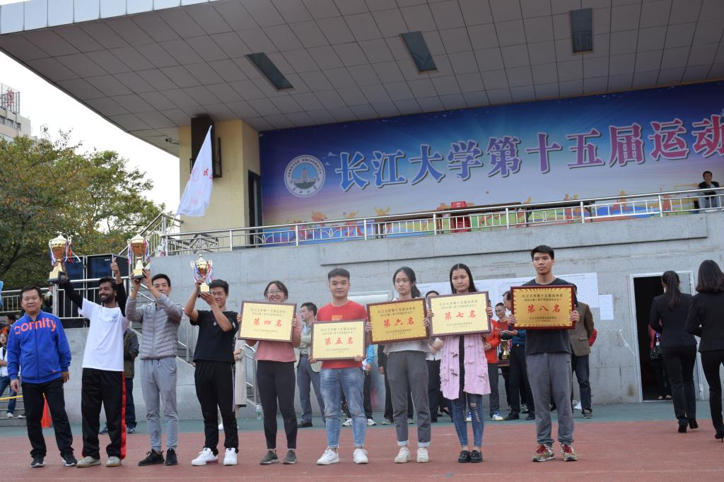 男子甲组团体第五名,田径比赛甲组团体第八名以及道德风尚奖。16届动科院员工会主席周锦、副主席邓芳衡、安委副主任张颖等人作为代表上台领奖。
