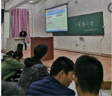 在入党指引课上,曾书记从入党好不好、什么样的人能申请入党、发展党员的基本程序三个方面展开。首先,他介绍了中国共产党这个光荣、伟大的组织,然后对申请入党的同学要求首先树立正确的入党动机,并不断要求进步,克服自身不足,创造条件向党组织靠拢。最后,他详细介绍了中国共产党发展党员的5个阶段25个基本程序,对其中的一些细节,如如何写入党申请书和思想汇报,如何在日常的学习、生活及班级活动中严格要求自己,为同学为班级服务,如何在思想上不断进步等等。同学们聚精会神听讲,对曾庆军书记的授课纷纷表示赞同。