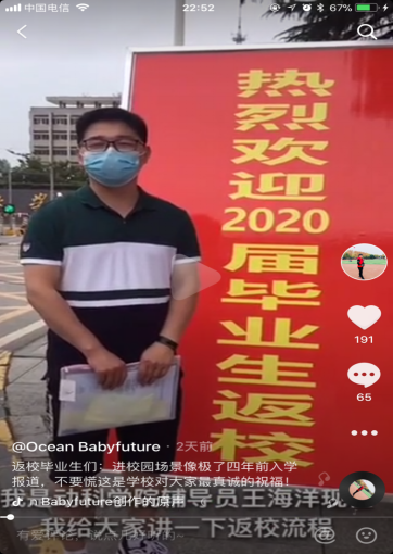 近日,英国365集团网站辅导员王海洋老师利用抖音短视频录制的返校员工进校指南,在员工中引起了剧烈反响,获得了同学们的一致好评,目前已播放12000次。