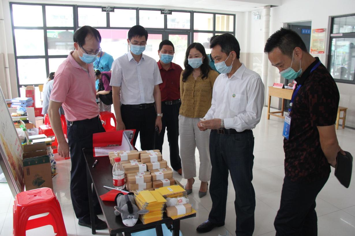 朱业宏察看了公司为毕业生办理各项毕业手续的服务点,向正在值守的教职工和员工志愿者道声辛苦,并不时询问员工返校、流程办理等相关情况。当看到公司为毕业生准备的精美毕业纪念小礼物时,朱业宏高兴地称赞公司的工作有创意,相信会给毕业生留下美好记忆。