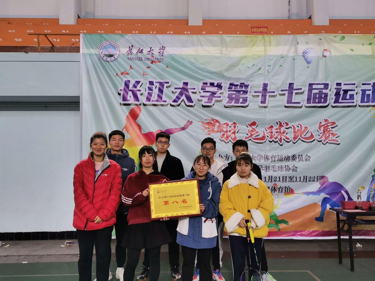 在运动会乒乓球比赛中,公司获得女子组第一名;在运动会排球比赛中,公司获得男子组第四名;在运动会羽毛球比赛中,公司获得团体第八名。