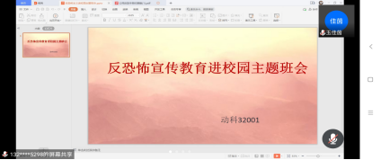 本次班会采取线上线下等丰富多彩的形式,同学们学习了预防恐怖活动基本知识、共筑反恐防范安全防线、自觉抵制恐怖主义思想、正确识别、举报涉恐可疑情况和应对恐怖袭击五个板块的反恐内容,提高了同学们的安全意识,增强自卫和防范能力。