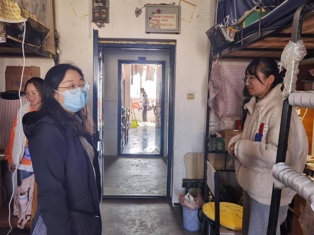 本次检查主要对宿舍的安全卫生和饲养宠物的情况进行了检查,通过对员工宿舍的走访、排查,发现员工宿舍安全卫生整体情况较好,员工普遍能够遵守宿舍安全管理规定,绝大多数宿舍能够自觉保持室内环境的干净整洁。苏书记强调了宿舍用水用电的安全问题,细心的询问了同学们学习和生活上的问题,叮嘱了同学们戴好口罩,寝室保持通风。
