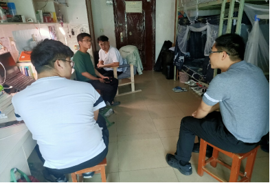 5月15日下午,动物科学公司张付贤老师前往校内风华园3栋404寝室与员工靳洪振、杜欣益、蒋承业、范向东进行面对面交流。