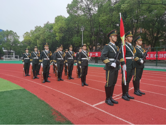 “升旗仪式正式开始!”随着一声令下,英姿飒爽的国旗护卫队迈着铿锵有力的步伐,喊着响亮整齐的口号,以庄严肃穆的态度护送鲜艳的五星红旗走向升旗台。“升国旗,唱国歌!”伴着《义勇军进行曲》的奏响,五星红旗载着每位新生对大学的憧憬和希望冉冉升起,升上瓦蓝瓦蓝的天空。全体师生站得笔挺,怀着自豪和崇敬的心情瞻仰迎风飘扬的国旗。
