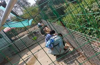3日上午八点,同学们乘坐公交前往目的地,于十点左右到达,同学们一边通过与猫狗玩耍与小动物们建立了良好关系。一边进入小动物的小窝清扫落叶与粪便,接着给小动物清洗水盆和食盆,换上干净的水和食物,然后同学们便使用工具帮忙清理笼网上的动物毛发。