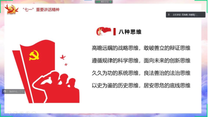 范海璐指出,深入学习习近平总书记“七一”重要讲话精神,要把握四个方面的深刻内涵。一是深刻认识全面建成小康社会的伟大成就,这历史性地解决了绝对贫困问题,但仍要以永不懈怠的精神状态、一往无前的奋斗姿态,向着实现第二个百年奋斗目标奋勇前进。二是深刻认识中国共产党百年光辉历程和伟大成就,党的百年奋斗不仅从根本上改变了中国人民的前途命运,也深刻影响了世界历史进程,为人类探索更好的制度和新的文明形态提供了中国经验、中国方案、中国智慧。三是深刻认识伟大建党精神的科学内涵和时代价值,要继续弘扬光荣传统、赓续红色血脉,永远把这精神继承下去、发扬光大。四是深刻认识新征程上以史为鉴、开创未来的根本要求,总结历史经验、把握历史规律,增强开拓前进的勇气和力量,用“九个必须”深刻揭示了过去我们为什么能够成功、未来我们怎样才能继续成功的深刻道理。她还通过放映党百年建设的红色视频,生动形象地使同学们体会到,一百年来,中国共产党团结带领中国人民攻坚克难,“为有牺牲多壮志,敢教日月换新天”的大无畏气概。