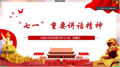 (通讯员:范海璐 张文蝶)1月12日晚8时,动物科学公司第二期青马学习小组在线上围绕“回顾光辉历程,展望光明前景”的主题开展“七一”重要讲话精神的理论授课,全体学员参与本次活动,同时邀请到了党委书记熊新山,并由员工辅导员范海璐担任主讲人。