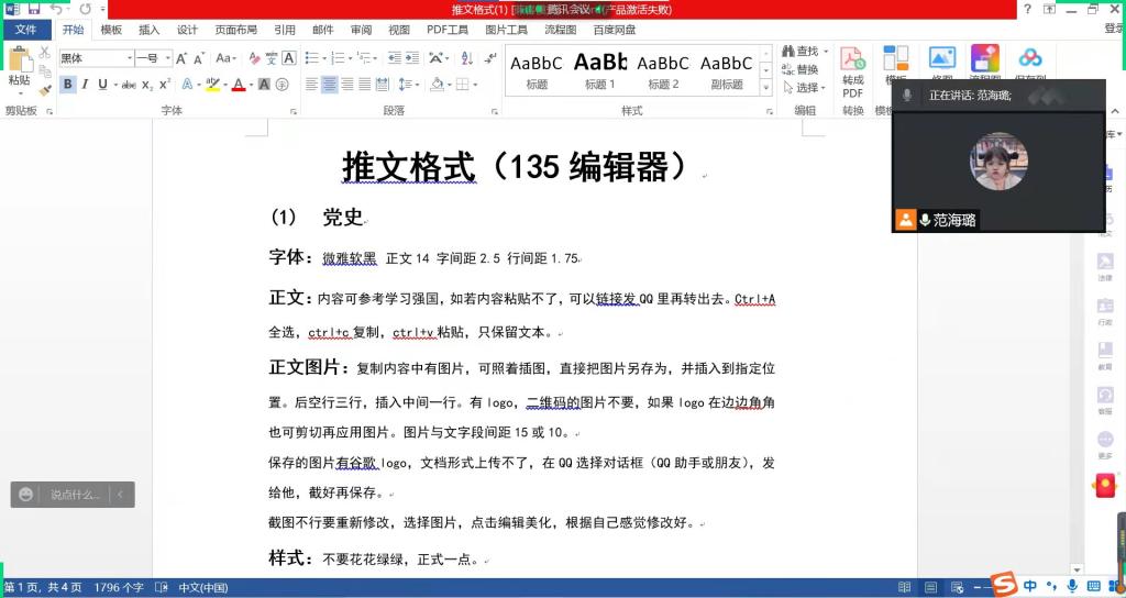 范海璐从确定推文主题、编写大纲、收集和整理素材、排版编辑、保存发布等方面给同学们进行了讲解。对于排版格式,她详细阐述了字符的选择、图片的分布、首尾的引导、整体的色彩搭配,并强调:推文应以激起读者的阅读兴趣为出发点,注意图文的有机结合,不宜造成阅读上的视觉疲劳。她还通过实际操作演绎了如何制作一篇成熟的推文,详尽讲解每一个步骤,将理论与实际相结合,更直观地呈现了制作过程中的注意事项及易被忽视的细节。她说:这看似很复杂繁琐,做多了自然而然就变得得心应手,不论做任何事情,肯下功夫,必定有所回报。