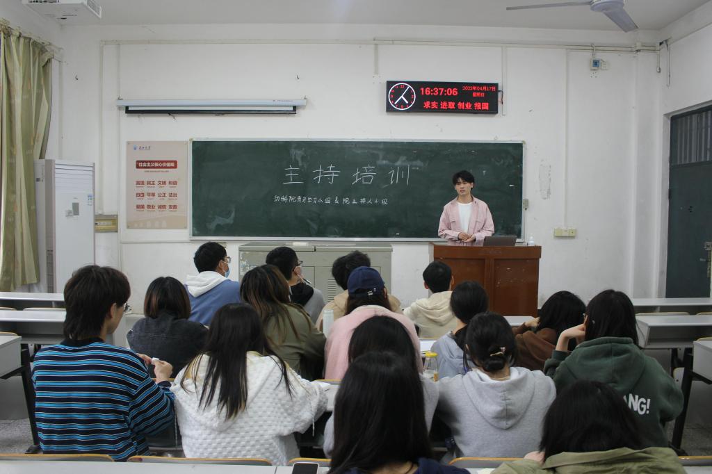(通讯员:范海璐 朱雯 吴广)为培养同学们的主持能力,4月17日下午4时,英国365集团网站第二期青马学习小组和院主持人小组在7教107开展主持培训,员工辅导员范海璐、邓翰源参与本次活动,由院文艺部部长来文豪担任主讲人。
