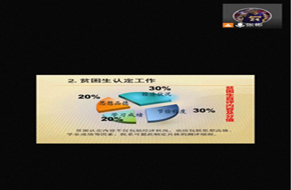 本次资助会议有五个方面主要内容:贫困生认定工作、国家奖学金初选工作、国家励志助学评选工作、各类社会奖助学金工作、长大奖学金及各类公司助学金工作。首先,张彬老师介绍了公司资助工作体系分公司和国家两个层面,并展示了本学期员工资助重点工作。接着他讲解了贫困认定工作的认定的四级机构,校领导员工资助中心、公司、班级。他提到:“班级家庭经济困难员工认定评议小组要以班主任为组长,班长或团支书为副组长,每个寝室推选一人为员工代表,员工代表要具有广泛的代表性且为单数。”随后张彬老师介绍了国家奖学金助学金等各类奖学金的评定规则及评定工作的开展方式等,着重强调了各类奖学金、助学金申请表填写内容的注意事项。