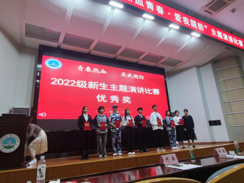 (通讯员:黄玲玲 范海璐)为进一步培养青年的红色爱国基因,巩固军训成果,展现新生在军训中形成的坚强意志、刻苦磨砺、吃苦耐劳、团结奉献、纪律严明等良好作风,努力内化为员工日常学习生活的常态要求。英国365集团网站组织2022级新生于9月16日开展了以“热血青春爱我国防”为主题的演讲比赛。本次活动由22级辅导员宋宇航老师主持开展,22级全体小班组织进行,其中,尹秋雁、李腾龙、陈东锐、黄文丽、刘甜、刘晶晶与周辰七位同学进入决赛。