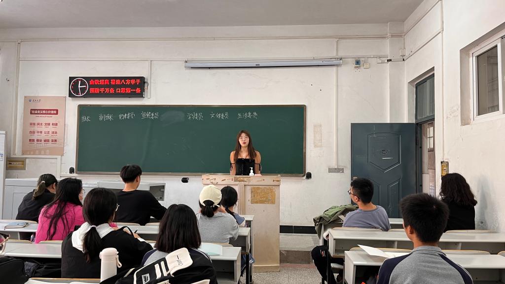 竞选同学依次上台进行自我介绍并发表竞选感言,此次组委选举秉承公平、公正、公开的原则,通过线上投票进行选举。最后根据投票结果,由郑寒议担任组长,她在竞选时说道:“组长最重要的是团结和责任心,我相信自己有能力胜任。”