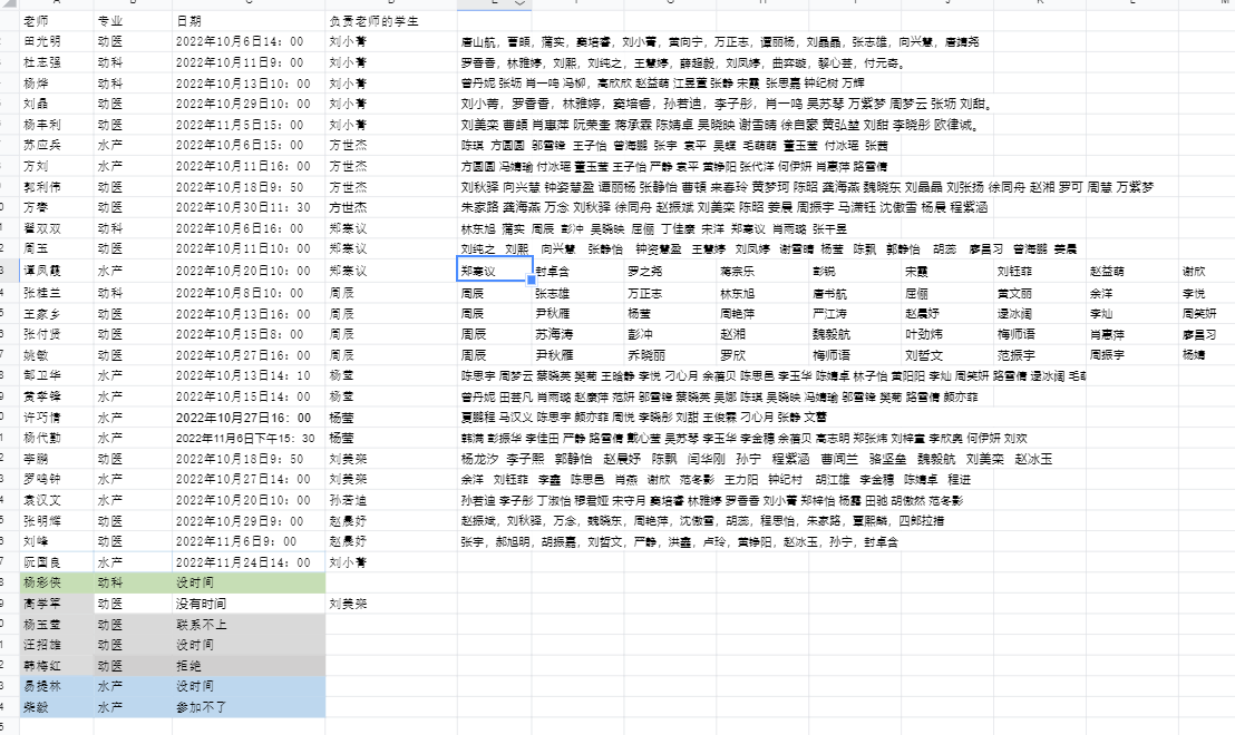 本次活动的前期,采取的是动物科学公司学习科创部提前公布“师生面对面”的具体安排与主讲教师的相关情况,然后由同学们根据自身兴趣以及课程安排自主选择主讲教师并在问卷星上进行线上报名参加,以面对面交流以及参观实验室的形式开展。老师们的活动时间具体如下:
