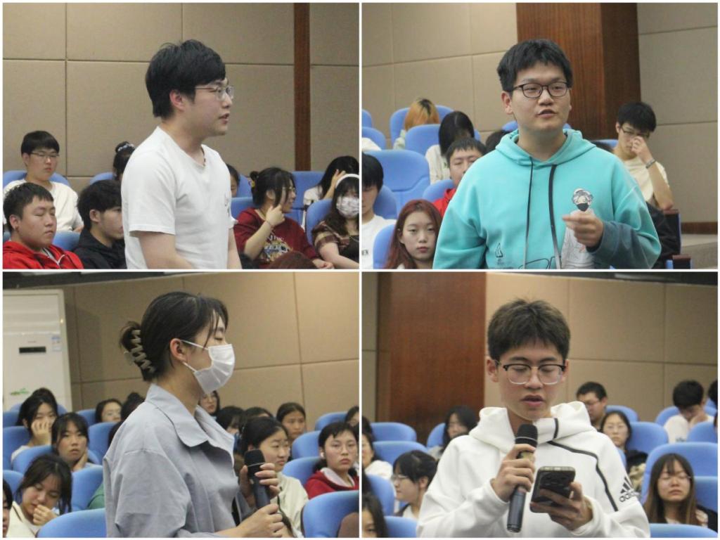 最后的师生互动环节,同学们提出了自己心中的疑惑,徐镇导师认真的为他们进行了专业的解答和分析,他提出了四个要点:一是“唤醒”,唤醒自身潜能、拓展固有界限外的思维能力,开阔视野方能进步;二是“寻梦”,确定自己职业目标和个人发展计划,并为之学习技能不断精进;三是“分享”,通过个人成长中经验教训分享,让大家有所思考,取长补短;四是“践行”,强调不能死读书读死书,要勇于实践锻炼求成长,做到知行合一,诚信至善。