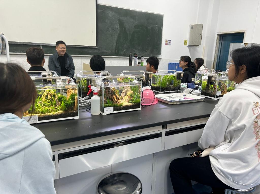 当天下午,报名的同学准时到场与水产养殖系的罗鸣钟老师进行交流。罗老师首先关心了同学们目前的专业学习情况,接着带领同学们参观了不同的实验室。在参观四楼实验室的过程中,罗老师介绍了实验室的标本类型和自己的课题研究方向;随后,带领同学们来到一楼实验室参观水族造景的课程作业。在一楼实验室内,罗老师就同学们对于专业课程和考研方向等问题进行答疑解惑。罗老师认为大学是一个广阔的平台,希望我们不要虚度光阴,要珍惜时间,做有意义的事情。同时强调不论做什么都要坚守自己的初心,扎扎实实得走好每一步。