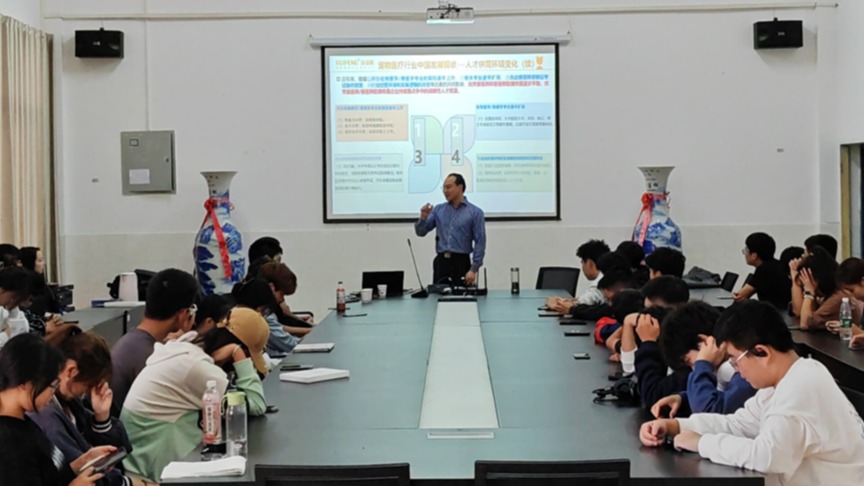 讲座正式开始之前,宋辉以讲故事的口吻启蒙,介绍动物医学这个行业并展开了一系列的论述,与同学们积极互动,现场氛围活跃热情。