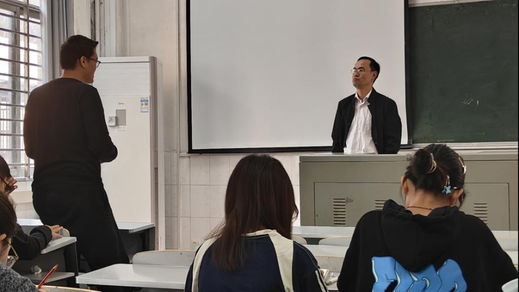 其次,李老师对同学们在学业上的问题也做了耐心解答。李老师说:大学最重要的是培养自主学习能力,只有自己找机会,才能有更好的发展。在职业规划方面,李老师主要解决了同学们最关心的考研问题,并预测了近几年本专业热门的研究方向。李老师的讲解让同学们对往后的学习燃起了极大的兴趣。