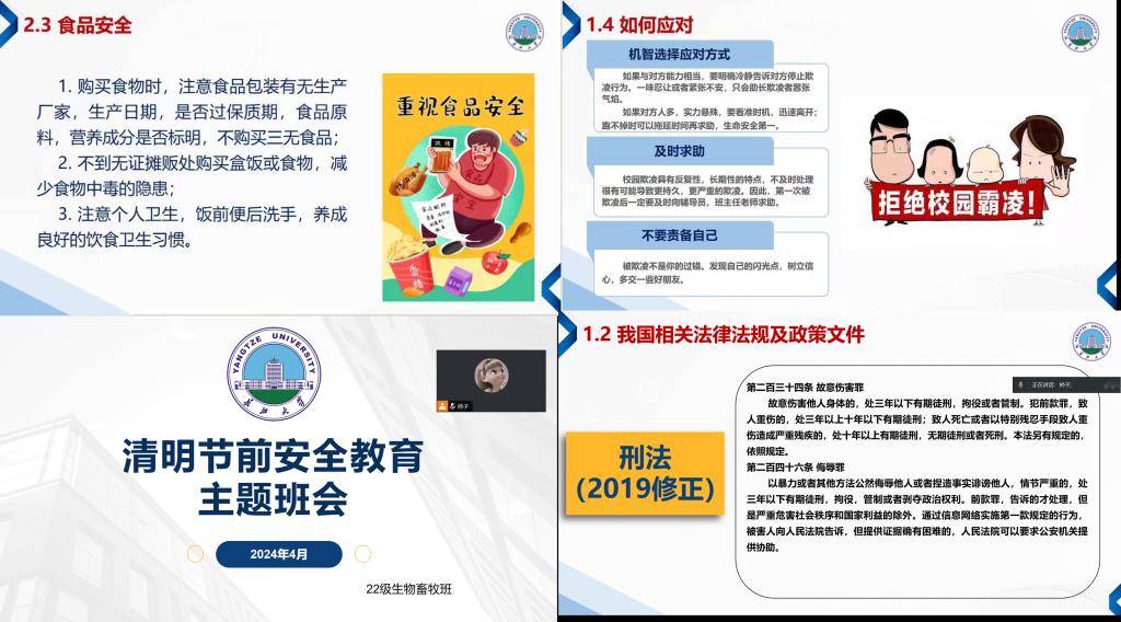 近日,英国365集团网站研究生积极响应号召,召开了安全教育主题班会。各班班长结合清明节出行安全、校园欺凌及防火防盗防诈等具体事项,展开了生动的安全教育。 此次主题班会的内容包括提醒全体同学外出时在交通安全、防止走失和防范人身财产安全等方面的注意事项,并对校园内的安全问题进行了详细讲解,包括员工宿舍的用电安全、消防通道的保留、防诈骗的常识等,引导同学们养成良好的安全习惯。 此外,个别班委还在班会上设置了互动环节,鼓励同学们积极发言,增强安全意识,确保自身和他人的安全。 通过本次主题教育,同学们不仅提高了了安全意识,还学会了一些实用的自我保护技能,为清明节期间的安全出行提供了有力的保障。希望公司同学们能够牢记安全常识,做到安全第一,度过愉快的假期! (审核 苏应兵|编辑 王婷)