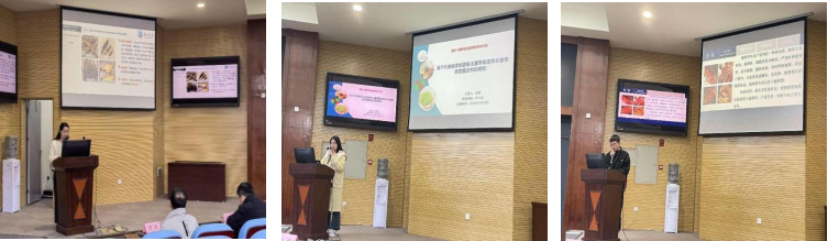 闫普普以《多组学分析三种中药多糖对输卵管炎蛋鸡作用效果》为题,向我们分享了荷叶多糖、茯苓多糖和淫羊藿三种多糖对蛋鸡输卵管炎的调控作用以及对乳酸菌丰度的的提升效果。蒋婧姣的研究《磁场对肌原纤维蛋白乳化特性调控机制》指出,经过3、6、9 mT磁场处理的MP稳定乳液表现出更高的乳化能力、储存稳定性和表观粘度。杨雨婷在《单增李斯特菌gltC基因参与GadT2/D2介导的抗酸应激能力的研究》中介绍了谷氨酸合成途径对GAD系统发挥作用的影响,同时强调了氮代谢与抗酸应激能力之间的重要关联。