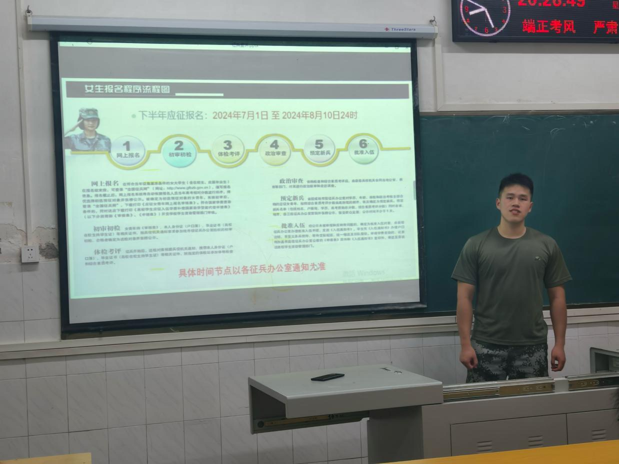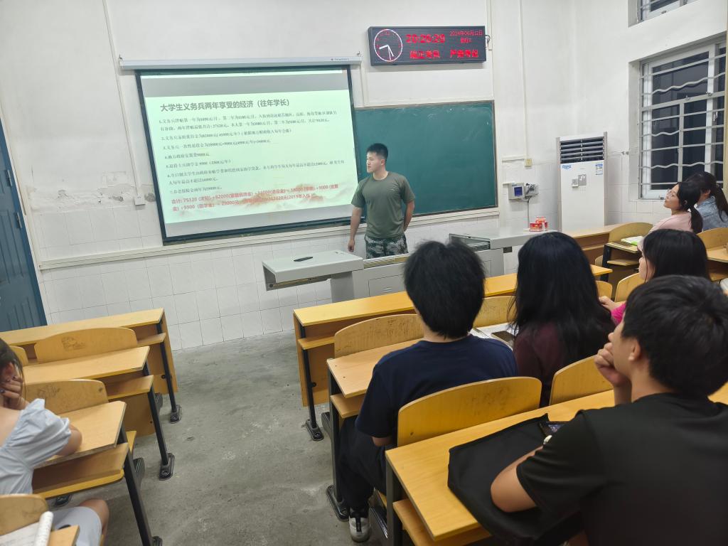 本次宣讲内容丰富多彩,不仅介绍了军队的历史与文化,还详细解读了征兵政策与流程。并关于应征入伍的条件标准、应征指南、优待政策等几个方面展开宣讲。此外宣讲员结合自身在部队的经历,为大家详细介绍了多姿多彩的军旅生活。