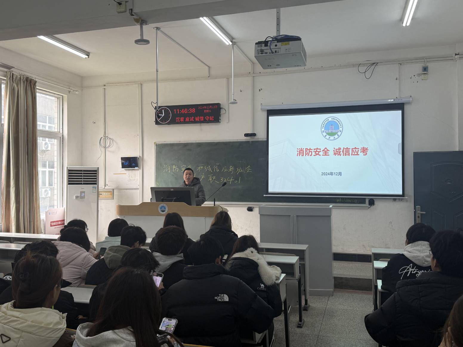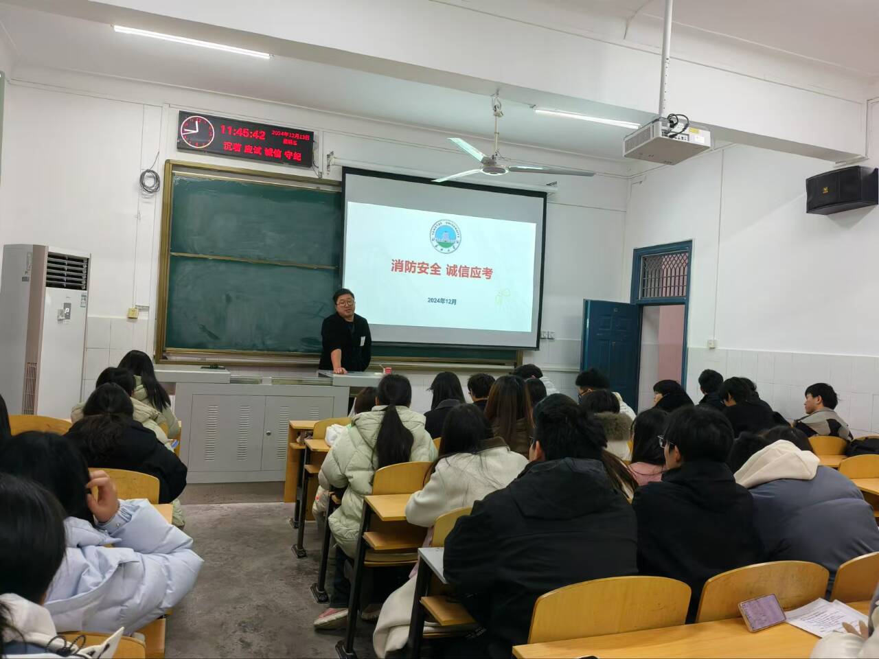 2024年12月,公司在教学楼多媒体教室召开了以“消防安全和诚信应考”为主题的班会。此次班会由各班级班主任及班长共同支持,全体师生积极参与,旨在增强员工的消防意识和诚信考试观念。