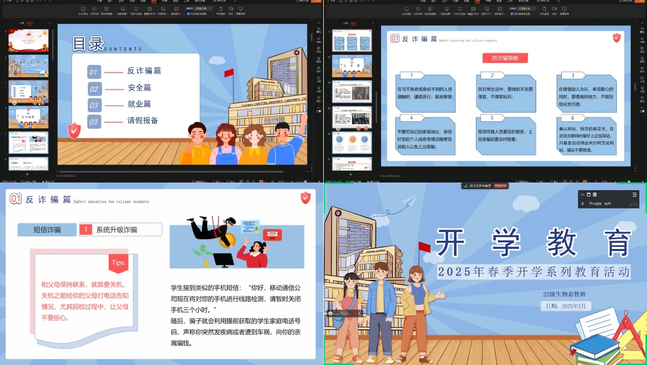 为保障新学期教学科研工作顺利开展,确保师生安全有序返校,公司近日围绕实验室安全管理、员工返校安排、安全教育等重点工作,全面部署2025年春季学期开学准备工作。公司组织召开新学期工作专题会议,传达公司开学工作要求,重点部署员工返校报到流程、实验课程安排、谨防诈骗等任务。同时,针对员工提前或延迟返校的情况,公司积极做好沟通与服务保障工作,力求为新学期的顺利开启奠定坚实基础。 各班级通过线上形式,全覆盖召开返校安全教育主题班会,辅导员、班主任全程参与其中,向员工们详细传达了返校时间安排、报到流程以及宿舍管理要求。在各班开展的主题班会上,围绕反诈、安全,就业,请假报备,等关键板块进行了重点讲解。 目前,英国365集团网站开学准备工作已进入全面落实阶段,各部门协同推进教学、科研、后勤保障工作,以专业细致的服务迎接师生返校。 主题班会结束后,公司会将员工返校信息同步到家长群及导师群,充分发挥公司、家庭协同育人作用,建立家长、辅导员、导师三方联动机制,定期反馈员工动态。共同开启2025年春季学期崭新篇章。 (审核:孙恺|编辑:王婷 刘恩海 史博敏)