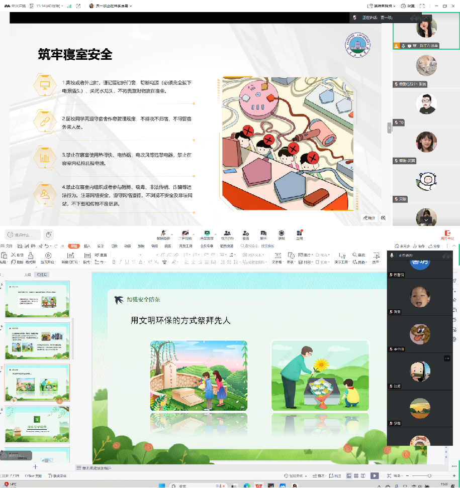 在清明节即将来临之际,为切实强化员工假期安全防范意识与能力,保障全院师生度过一个平安、欢乐的节日,公司于3月29日精心组织开展了2025年研究生清明假期前员工安全教育主题班会,通过多种举措扎实做好节前安全教育工作。 在此次清明节安全教育主题班会上,各班班长首先明确了公司放假及返校的具体时间安排,有序部署假期人员动向管理工作,认真收集清明假期去向登记表并做好备案。随后,班长们围绕人身安全、财产安全以及用电安全等多个方面展开详细讲解,尤其在交通消防、食品安全、防溺水和防诈骗这四个关键领域着重强调,提醒同学们在假期中时刻保持高度警惕,不断提升安全意识。 在交通安全与消防安全方面,着重指出假期出行务必严格遵循交通规则,仔细观察路况,全力避免交通事故的发生;同时,提醒同学们留意用火用电安全,最大限度减少火灾隐患。谈及食品安全,积极倡导同学们养成良好的饮食习惯,杜绝食用不洁食品,降低食物中毒风险。针对防溺水问题,特别叮嘱同学们切勿私自下水游泳,并深入阐释了“六不准”“四不要”和“八避免”等安全准则,全力防范溺水风险。最后,在防诈骗教育环节,结合真实具体案例,向同学们全面普及“八个凡是”的识别技巧,着重强调“六不”原则,助力大家提升辨别能力,有效防范诈骗风险。 在各班同学的积极响应下,本次安全教育主题班会取得了圆满成功。此次班会对于落实落细安全教育管理工作、消除各类安全隐患、增强同学们的自我防范意识具有极为重要的意义。 (审核:孙恺|编辑:史博敏 兰忠岐 王婷)