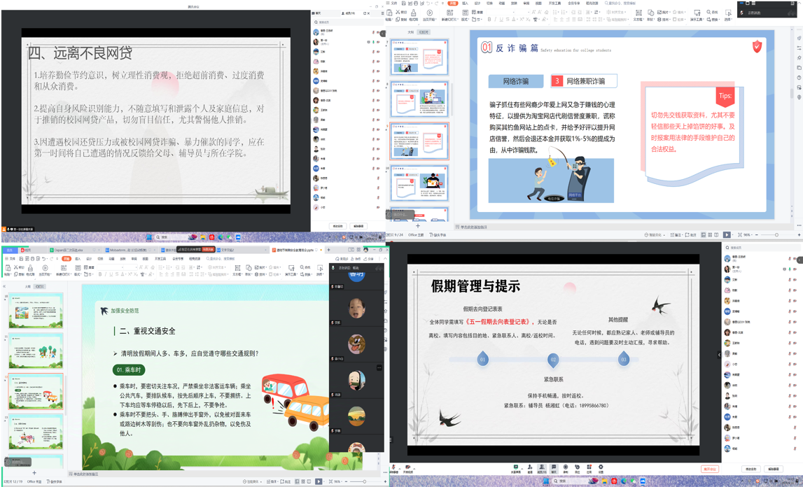 本次安全教育构建“1+4+N”教育体系:以《假期安全告知书》为总纲,重点聚焦交通消防、防诈反骗、食品卫生、防溺水四大领域,延伸覆盖心理健康、实验室安全等多元场景。各班安全委员通过情景模拟展示新型诈骗话术,运用大数据分析近年高校安全事故典型案例,特别针对“两卡”出借、网贷陷阱等突出问题开展靶向教育。创新采用“安全盲盒”互动形式,让员工在开盒答题过程中掌握应急处理技能。