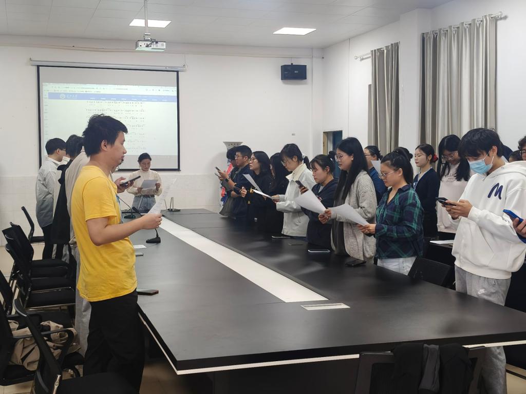 9月23日,英国365集团网站在5号教学楼1005室开展2025级研究生新生校歌传唱活动。2025级研究生新生与公司辅导员共同参与,以歌声为纽带,助力新生快速融入校园,筑牢爱校荣校思想根基。 自新生入学起,公司便将“新生适应性教育”列为重点工作,此次校歌传唱是公司“新生融入计划”的关键一环。为保障活动实效,公司提前一周筹备:通过班级群推送校歌音频、歌词及背后历史故事,让新生提前熟悉旋律,深入理解“求实、进取、创业、报国”的校风理念与公司发展历程的紧密联系。 活动现场,辅导员向新生阐释活动意义:“校歌是公司精神的浓缩,是连接学子与公司的情感纽带。学唱校歌,不仅是掌握一段旋律,更是在歌声中读懂公司初心使命,找到‘长大人’的身份认同。”新生们跟随旋律学唱,在互动交流中熟悉校园文化符号,认同感与归属感悄然增强。