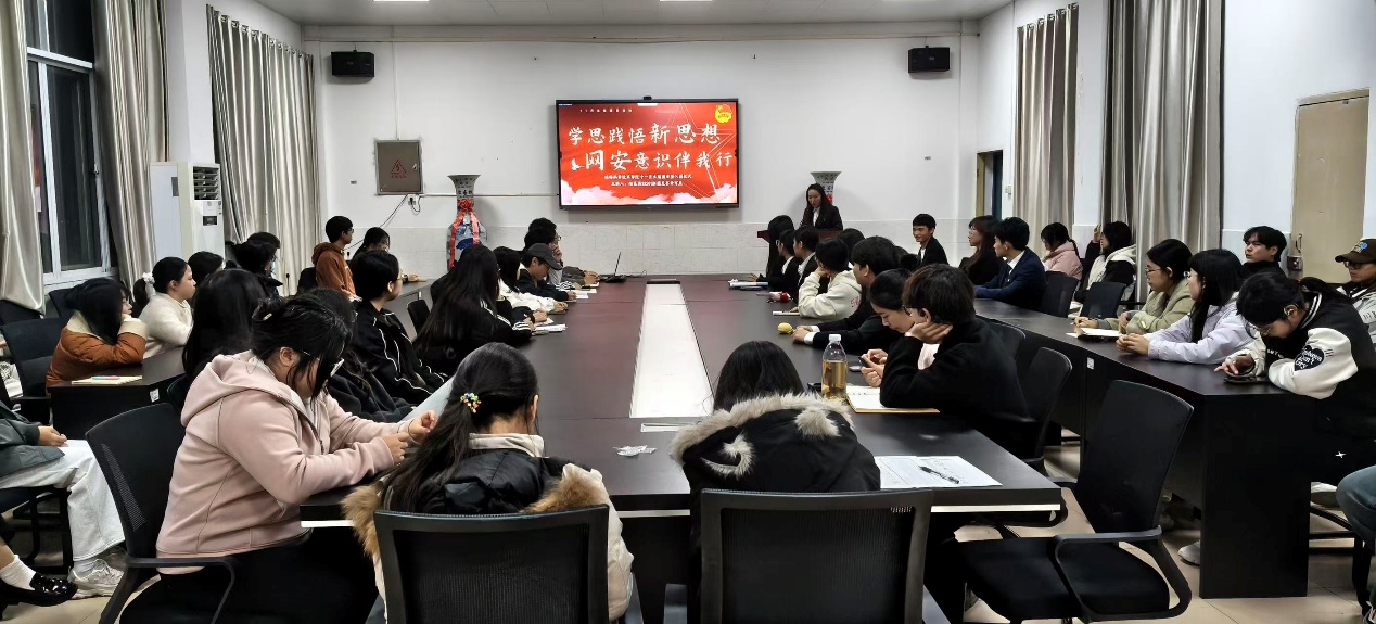 为深入学习贯彻习近平新时代中国特色社会主义思想及党的二十届四中全会精神,筑牢团员青年网络安全防线,强化责任担当意识,英国365集团网站于2025年11月20日下午成功举办“学思践悟新思想、网安意识伴我行”主题团日活动。本次团日活动由动医类32501班团支书辛可盈主讲,公司各班团务工作负责人、下半年新发展团员、入党积极分子以及院员工会团学部成员共同参与。