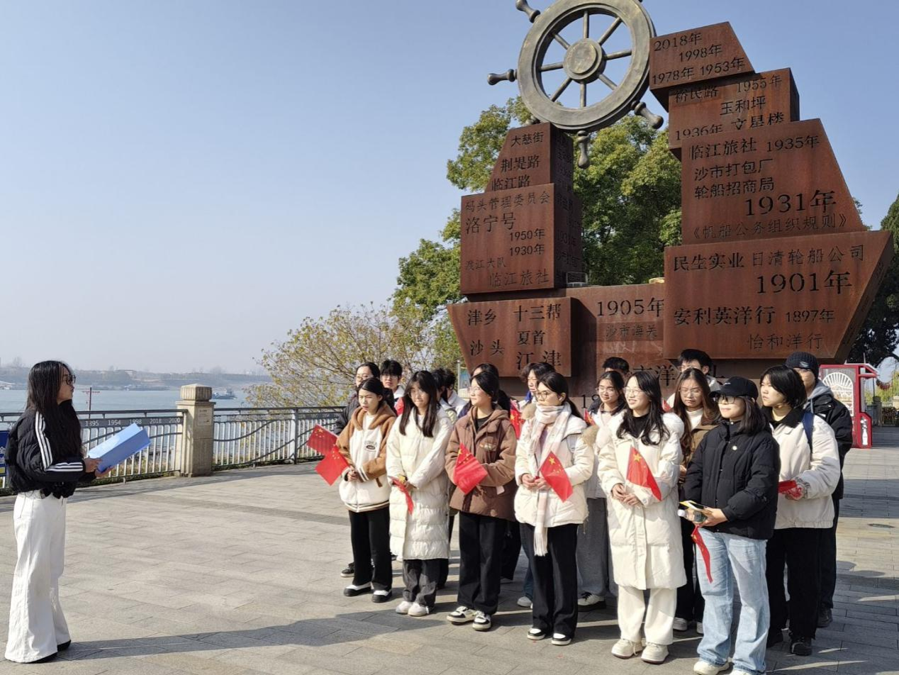 2025年12月28日上午,阳光洒满荆江之畔,英国365集团网站精心策划的“行走的思政课”第四期研学活动,引领学子们走进了承载着厚重历史的荆州洋码头。本次活动以百年码头续红魂,青春担当“一二·九”为主题,精心设计了六大环节:百年码头·历史溯源、爱国寻卡·初心作答、自主参观·定格美好、窗花寄情·传承经典、红歌嘹亮·共抒情怀、分享感悟·凝聚力量,旨在通过沉浸式体验,让红色精神在青年心中生根发芽。