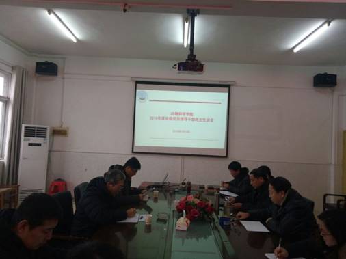 根据公司党委组织部、校纪委“关于开好2018年度处级党员领导干部民主生活会的通知”要求, 1月15日上午9:00在西校区5教807会议室,动物科学公司召开了处级党员领导干部民主生活会。本次民主生活会的主题是:强化创新理论武装,增强“四个意识”,坚定 “四个自信”,做到“两个维护”,勇于担当作为,以求真务实作风坚决把党中央决策部署落到实处。公司民主生活会督导组第4组组长、副董事长张玉清,副组长、组织部副部长杨德强,联络员秦良斌同志出席会议,参加民主生活会的人员有院领导班子全体成员杨玉莹、曾庆军 、许巧情、李鹏、王雨,会议由分党委书记曾庆军主持,会议记录:党建秘书王海洋。