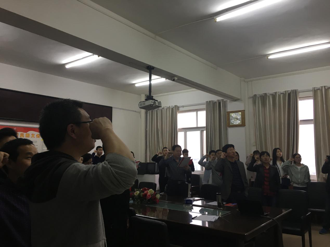会议伊始,杨玉莹经理带领全体党员重温入党誓词,宣誓结束后,马明璋同学带领大家诵读党章第一章《党员》,杨玉莹经理带领学习《中华人民共和国监察法》,李鹏副经理带领学习《深化党和国家机构改革方案》,聂国平主任带领学习《中华人民共和国宪法修正案》,许巧情副经理带领学习《习近平在第十三届全国人民代表大会第一次会议上的讲话》,郭利伟博士带领学习《奋进新时代 再创新辉煌》(新华社社评),王雨副书记带领学习全国人大会议精神宣讲PPT。