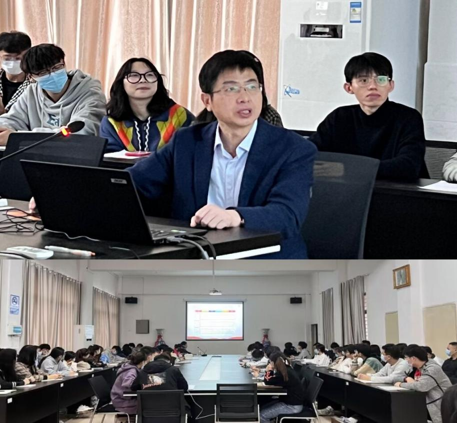 熊新山向大家详细解读了党的二十大会议及报告的要点,从奋斗新时代、贯彻新思想、擘画新蓝图、启航新征程四个板块展开。其中还包含了会前准备阶段、会中召开阶段、会后公报阶段的相关内容及大会主题及重要意义,引导同学们了解党和国家十九大以来的五年以及新时代十年以来的工作和伟大变革,了解在迈向现代化强国的征程中我们党和国家面临的艰巨任务和具体举措。在报告内容讲解结束时,熊新山强调,党的二十大是在全党全国各族人民迈上全面建设社会主义现代化国家新征程、向第二个百年奋斗目标进军的关键时刻召开的一次十分重要的大会,大会报告内容高屋建瓴、高瞻远瞩、立意深远、视野恢宏,大家要仔细研读,要通过报告精神的学习,深刻认识“两个确立”的重大意义,进一步增强“四个意识”,坚定“四个自信”,做到“两个维护”,在政治上思想上行动上自觉同党中央保持高度一致。